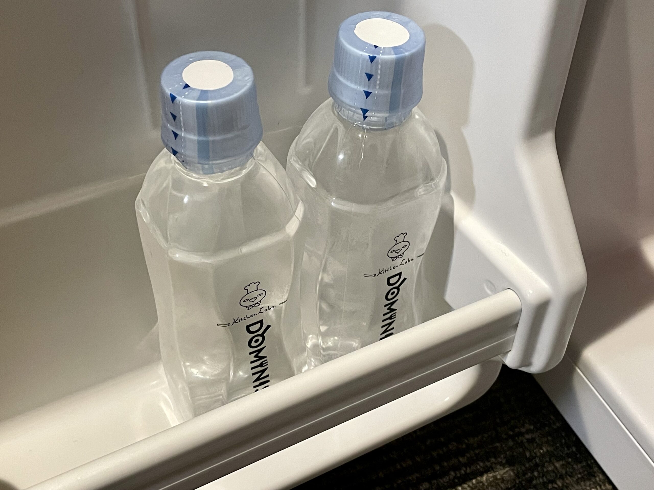 冷蔵庫の中にはなめらかマンゴープリンとお水が2個ずつ準備されていました。