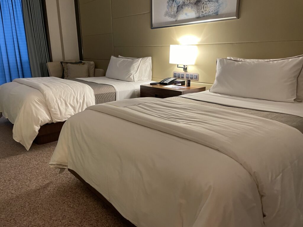 アジアの5つ星ホテルらしく、部屋全体が広く設計されており、スーツケースを2つ広げてもまだ余裕があるほど。
