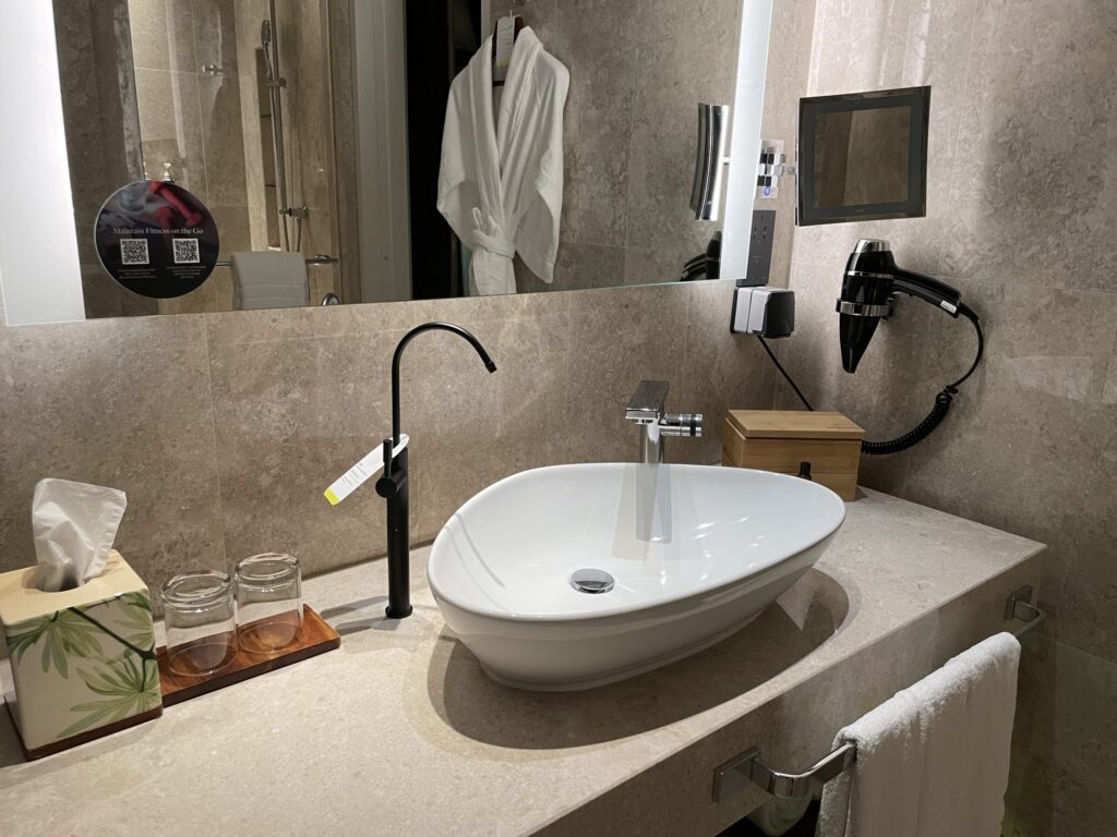 ✅️ 飲料水:日本のホテルのようにペットボトルの水は用意されておらず、エコを意識した「飲用蛇口水」スタイル。バスルームの蛇口からそのまま飲めるようになっており、シンガポールならではのサステナブルな取り組みを感じました。