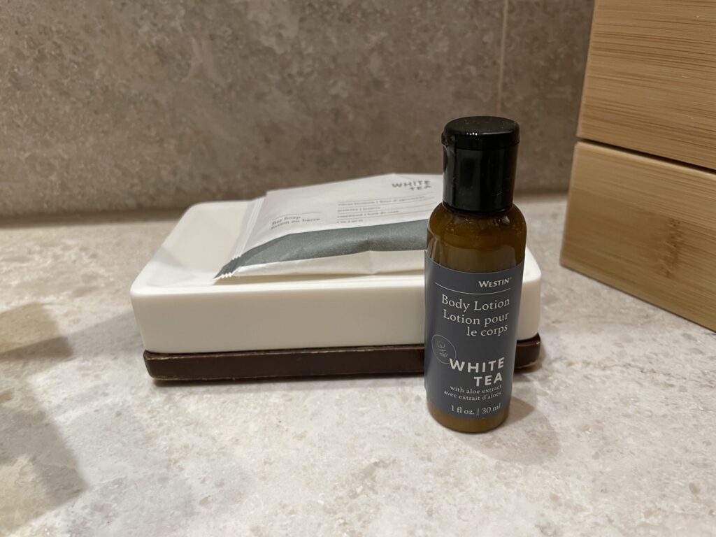 ソープやボディーローションもすべてホワイトティーシリーズで統一されており、香りの演出まで一貫しています。