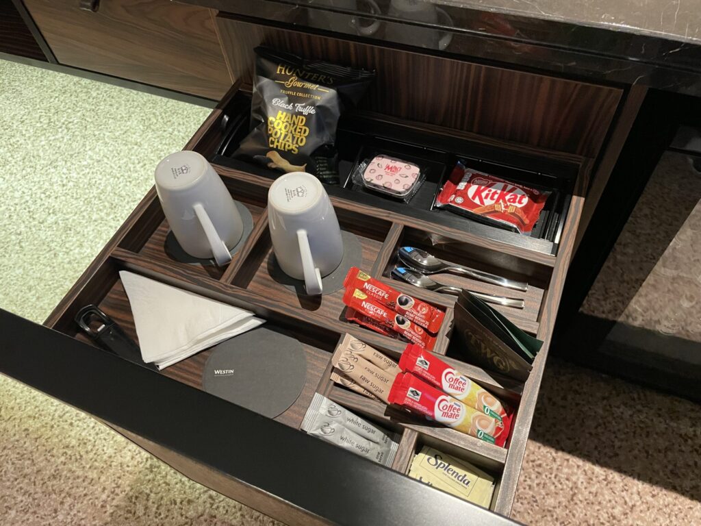 TWGの紅茶が置かれていたのは、紅茶好きの私には嬉しいポイントでした。(ただし、お菓子類は有料なので要注意です!)