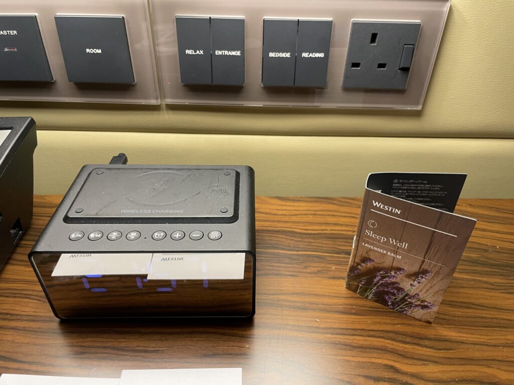 ✅️ 枕元設備:目覚まし時計、ワイヤレス充電器、BFタイプのコンセント(変換プラグ必須)、ラベンダーの香りのスリープバームもあり、自然に深い眠りへ導いてくれます。
