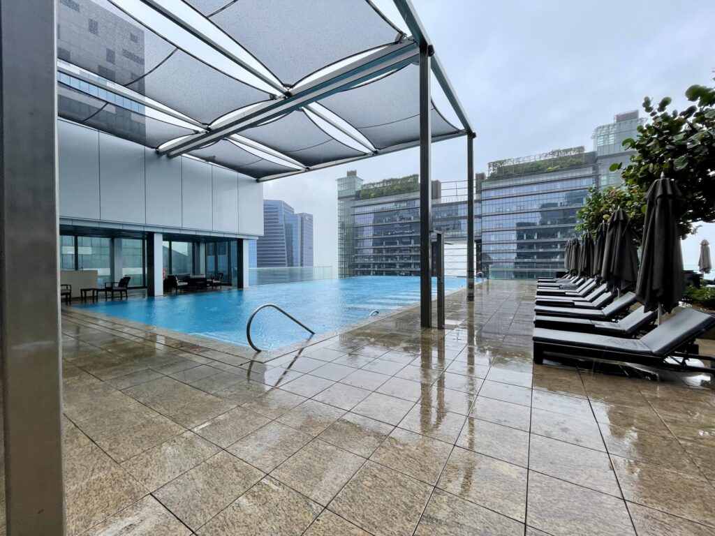 プールからは金融街の高層ビル群とマリーナ湾の海を一望でき、まさに“空に浮かぶオアシス”のような開放感です。