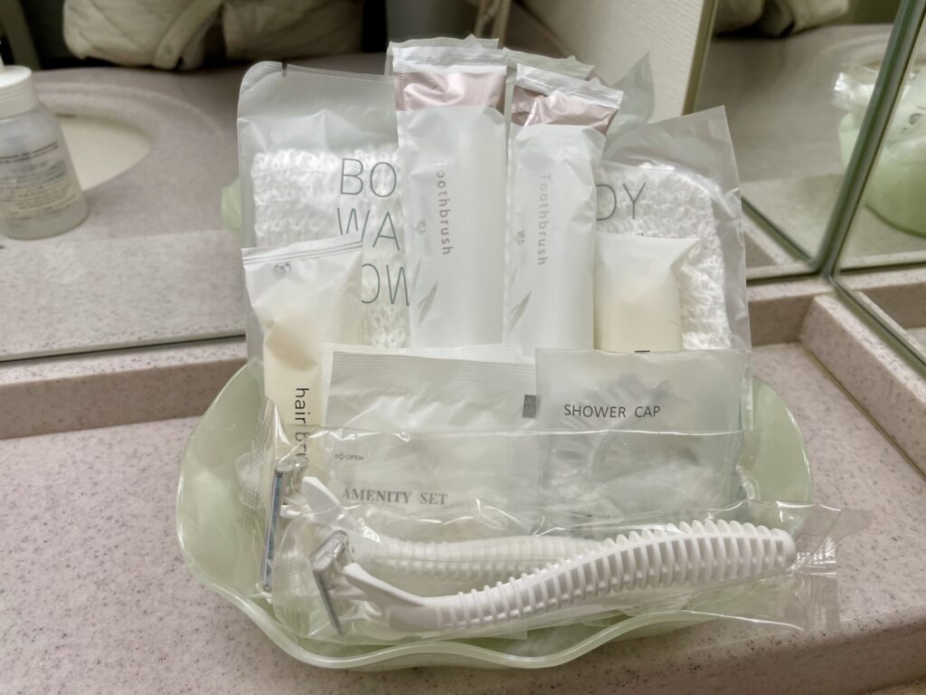 アメニティ内容はビジネスホテルに近く、必要なものだけがしっかり揃っている印象です。