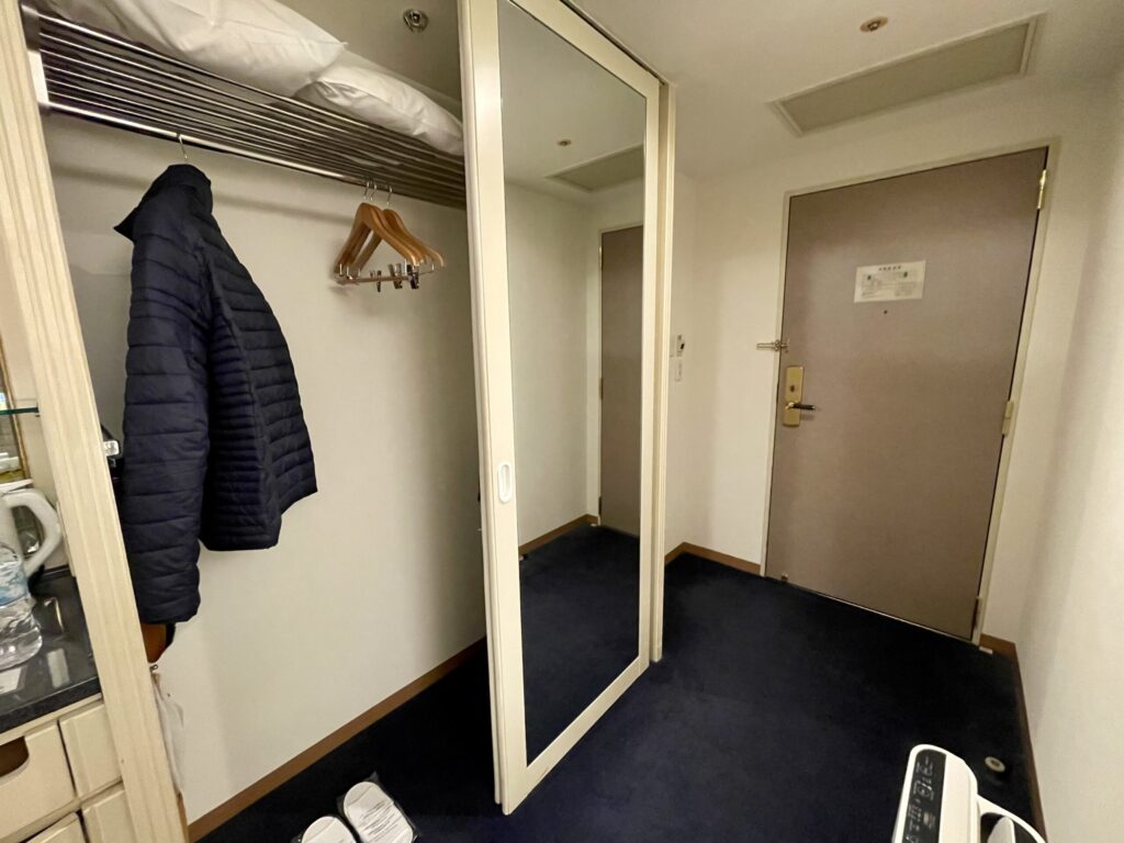 客室の広さは 32.6㎡ と、一般的なビジネスホテルよりもゆとりがあり、キャリーバッグを2つ広げても圧迫感がありません。