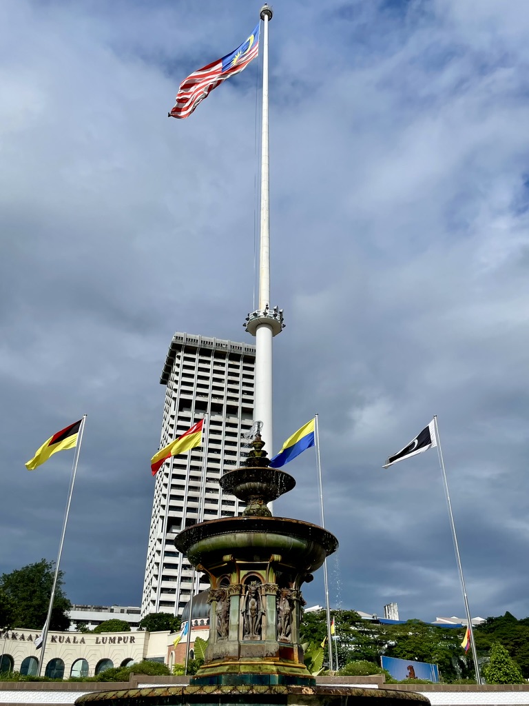 広場の南側には、高さ約100mの世界有数の国旗掲揚塔が立ち、マレーシア国旗が風に揺れる姿はとても印象的。