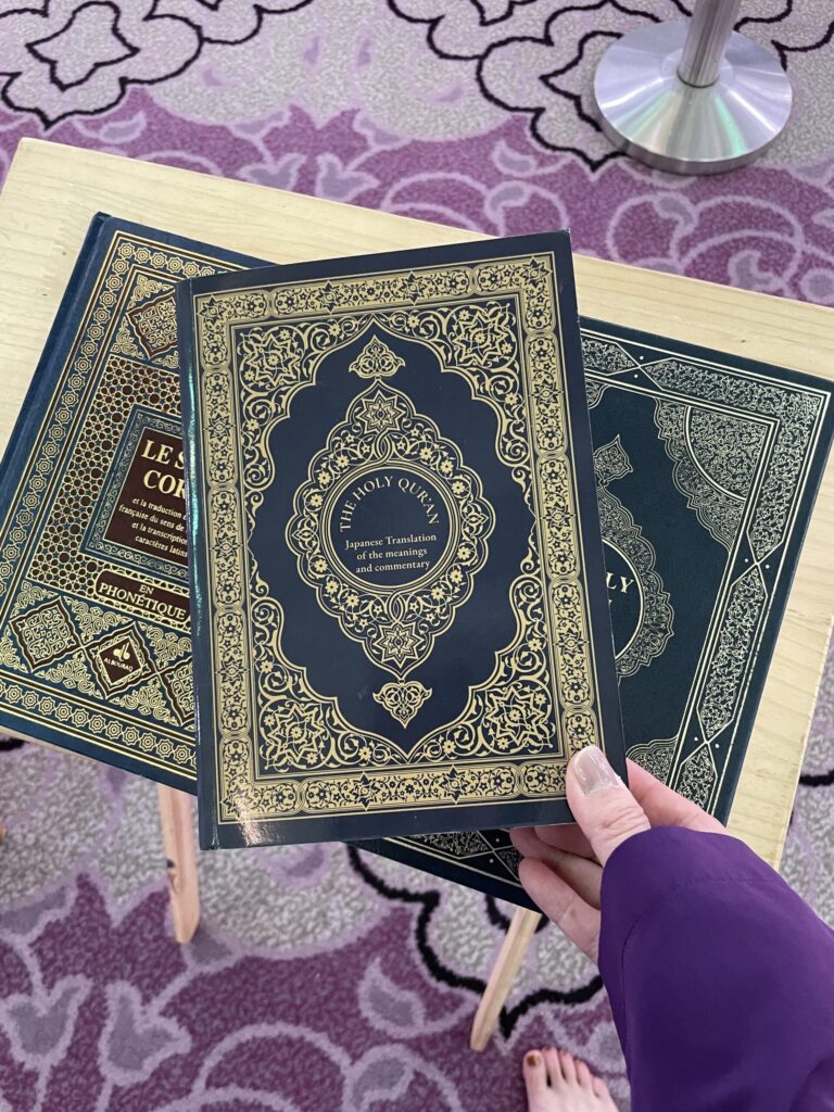 モスク内にはコーランが置かれており、手に取って眺めていると、スタッフの方が内容や読み方について分かりやすく説明してくれたのが印象に残っています。